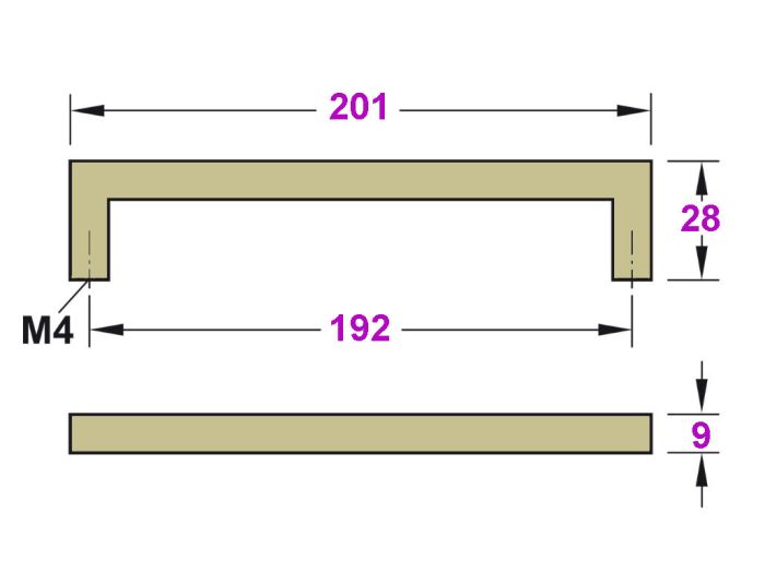 Moderni kantikas vedin 192mm harjattu messinki -look